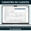 A planilha exibirá um formulário para consulta onde você poderá pesquisar cadastros de clientes por Código, Nome, CPF ou pelo mês do nascimento.
