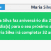 - Quantidade de dias quem faltam para o próximo aniversário.