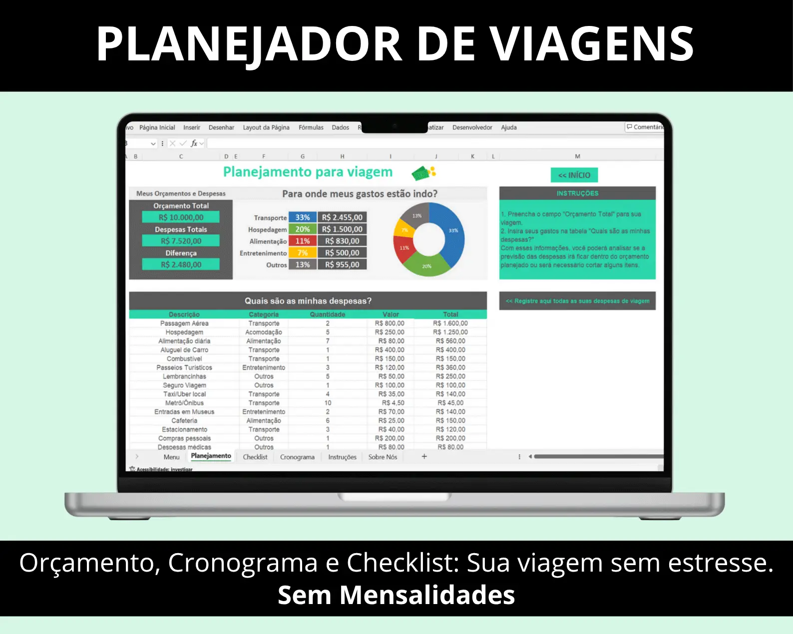 Com a Planilha Planejamento de Viagens você será capaz de: